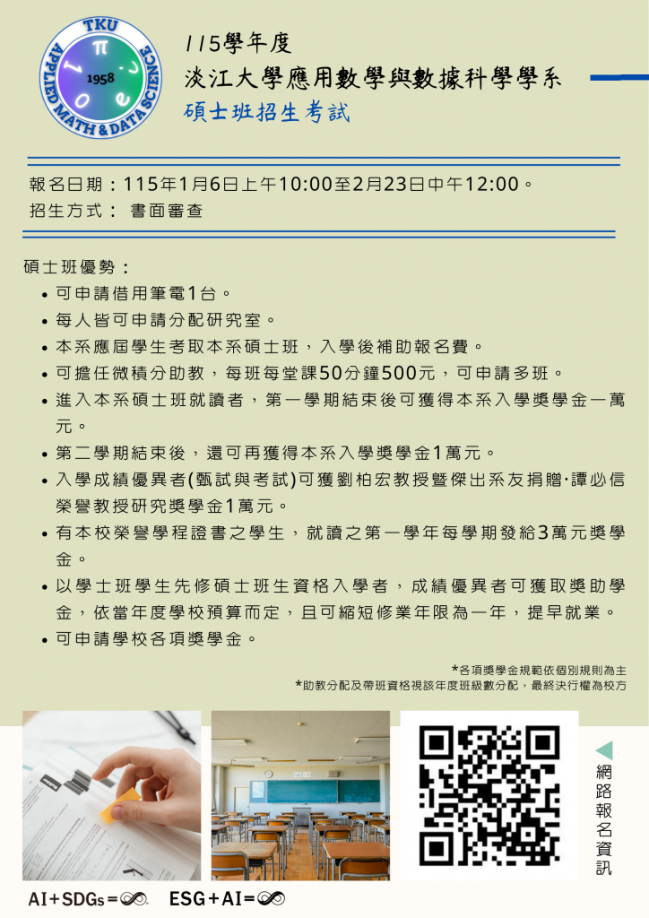 大家把握時間,歡迎報考,淡江應用數學與數據科學學系碩士班歡迎您!!